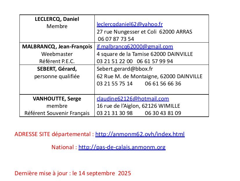 réunion du comité A.N.M.O.N.M.62 aura lieu à ARRAS